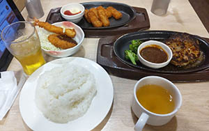 最後は今月の食レポ。今回はガストの4品選択コース1290円です。平日限定ですが、メイン料理に加え、サイドメニューが3品自由に選べます。自分はライス(大)とハッシュドポテト、コロッケ&エビフライをチョイス(揚げ物が多いですね)。これにスープとドリンクバーが付いて、この値段はかなりお得です!